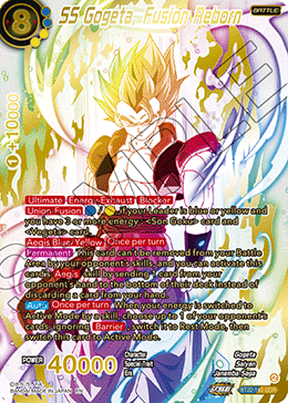 , if your opponent has 3 or more energy and draws 2 cards : Yellow <Son Goku> card with 5000 power and blue <Vegeta> card with 5000 power. When this card is played, this card can’t be removed from your Battle Area by your opponent’s skills until the end of your opponent’s turn. When your energy is switched to Active Mode by a skill, switch this card to Active Mode, then choose up to 1 of your opponent’s Battle Cards or Unisons and switch it to Rest Mode.