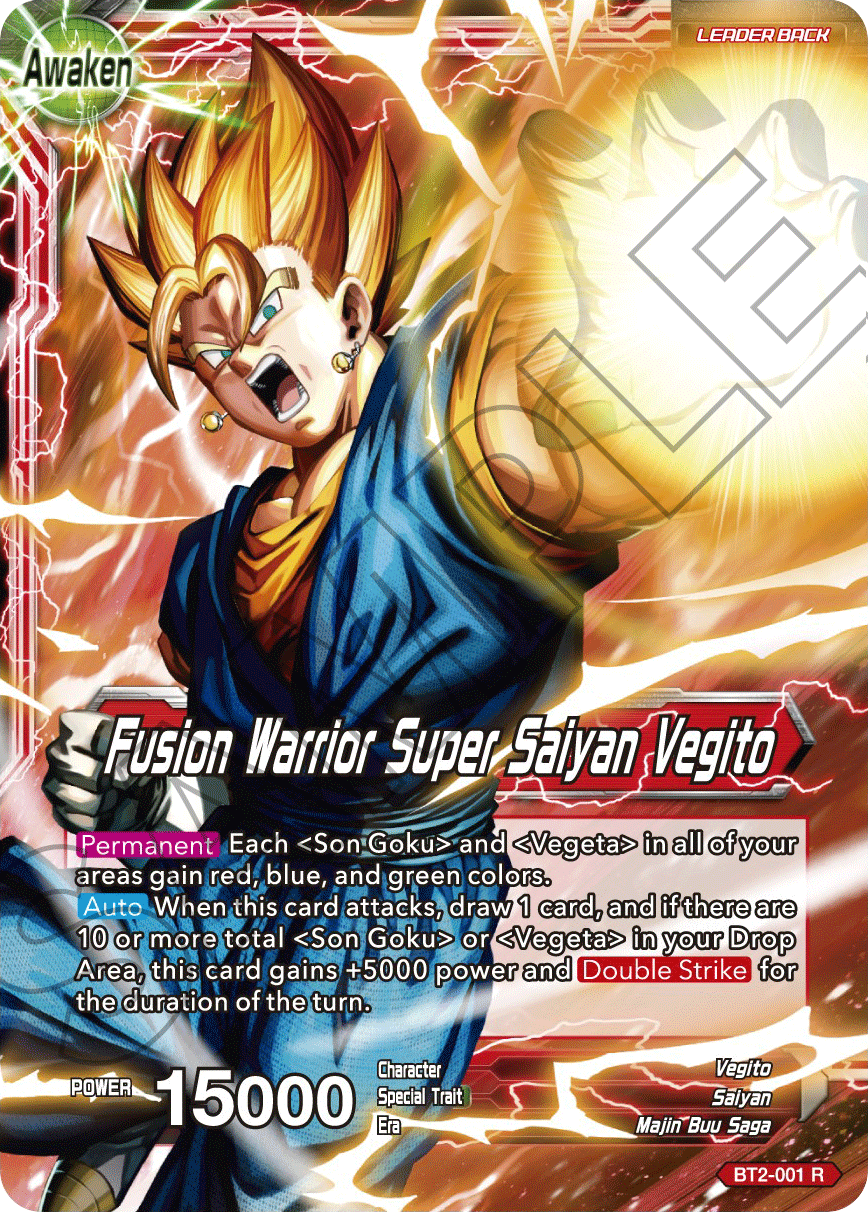 This card works well with the Vegito Leader Cards! If your Leader Card is a 〈Vegito〉 card like {BT2-001 Fusion Warrior Super Saiyan Vegito}, you can play a 〈Son Goku〉 card and 〈Vegeta〉 card at the same time, making it super easy to play cards like {BT2-013 Lightning Speed Vegito} or {BT6-036 Vegito, Powers Combined} with [Union-Potara]!