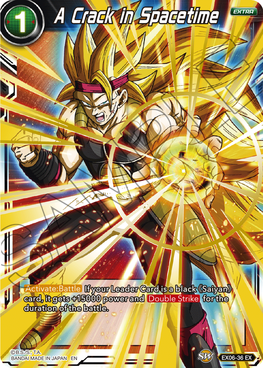 This card works well in decks with black Saiyan Leader Cards! This card gives your Leader Card [Double Strike] and a 15000 power boost. If you’re using {SD3-01 Bardock, Unbound by Darkness}, you can use its skills to give it both [Double Strike] AND [Critical] putting your opponent in a dire straits!