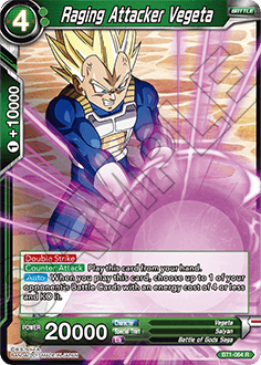 Armed with a powerful counter-attack skill, Raging Attacker Vegeta can drop in during your opponent’s turn and wipe out one of their Battle Cards!