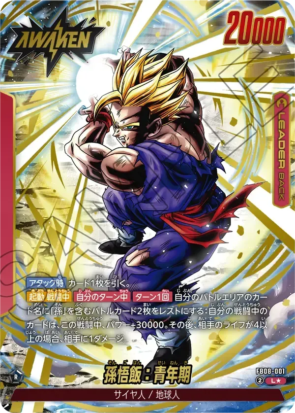 戰鬥區域存在成費用5以上特徵《賽亞人》的戰鬥卡時,對手在進行戰鬥卡攻擊時,必須將1張活動狀態的卡牌轉為休息狀態方可攻擊!