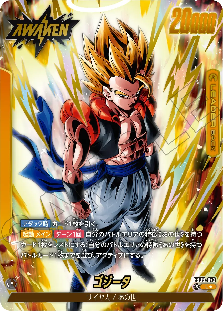 เมื่อปลุกพลังแล้ว การ์ดนี้จะกลายเป็น “Gogeta” และสามารถใช้ได้สูงสุด 1 ครั้งต่อเทิร์น โดยทำให้การ์ดที่มีคุณลักษณะ 《โลกหลังความตาย》 ในโซน Battleของตัวเอง 1 ใบเป็นสถานะเรสต์ และเลือกการ์ดแบทเทิลที่มีคุณลักษณะ 《โลกหลังความตาย》 ของตัวเองได้สูงสุด 1 ใบ เพื่อทำให้กลับมาเป็นสถานะแอคทีฟ!