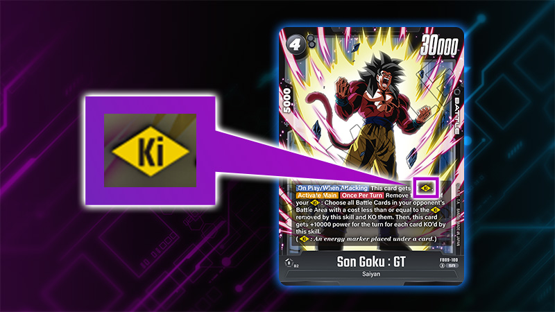 [Ki] is an energy marker placed under a card. Unlike regular Energy, it functions differently and serves as a new game mechanic that can be accumulated, spent, or referenced in various ways