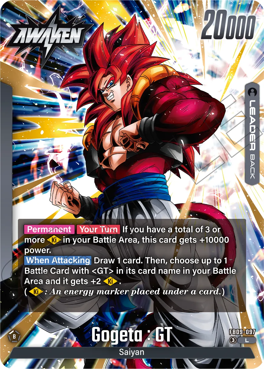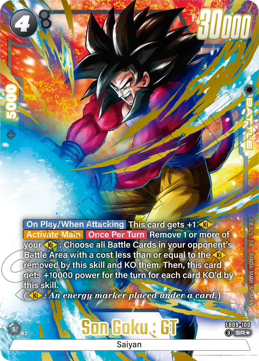 Additionally, when attacking, choose up to 1 Battle Card in your Battle Area whose card name includes <GT> and give it +2 [Ki]!