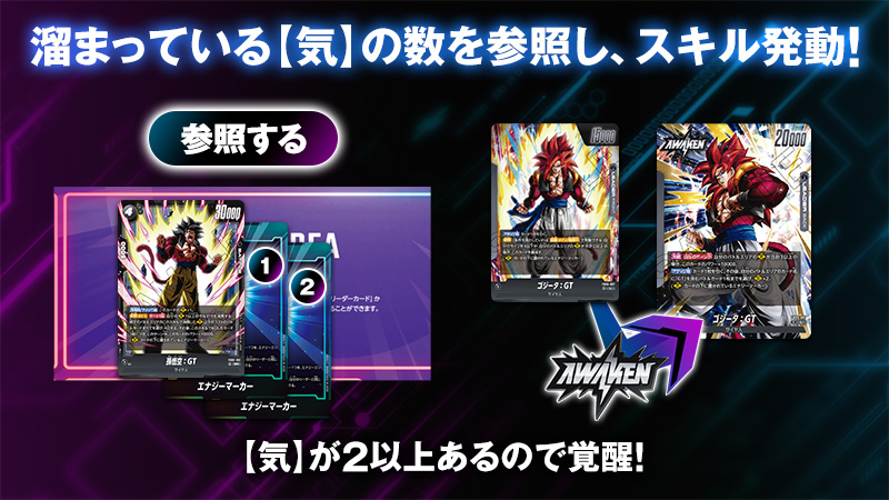 「FB09-097 ゴジータ:GT」の場合、自分のバトルエリアの【気】の合計が2以上あると、覚醒することができます。