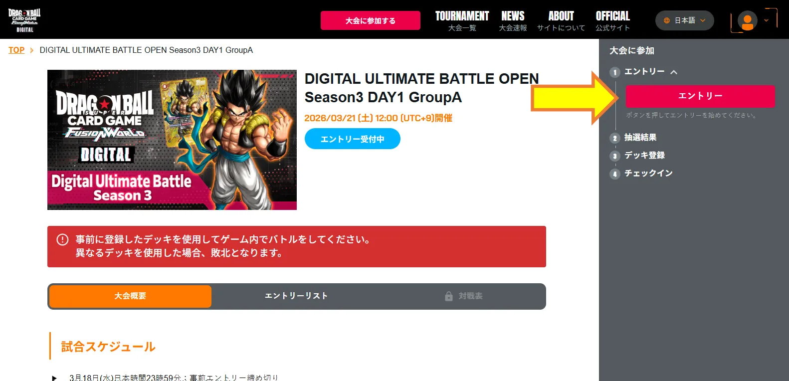 大会ページのエントリーボタンをクリック!