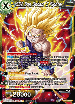 , draw 1 card : Red <Trunks : GT>. While this card is in Rest Mode, your opponent can’t attack your Unison Cards. When this card is played, choose up to 1 of your opponent’s Battle Cards and it gets -10000 power for the turn. , if your opponent has 1 or more energy : Play this card from under a Unison Card.